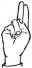 На ћирилици написано ВУКОСЛАВ ГРУБИШИЋ састоји се из 16 слова [?]. Исписано ћириличном једноручном азбуком за глувонеме: